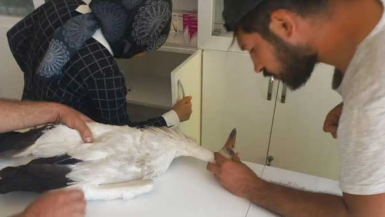 Konya'da yaralı bulunan leylek tedavi altına alındı