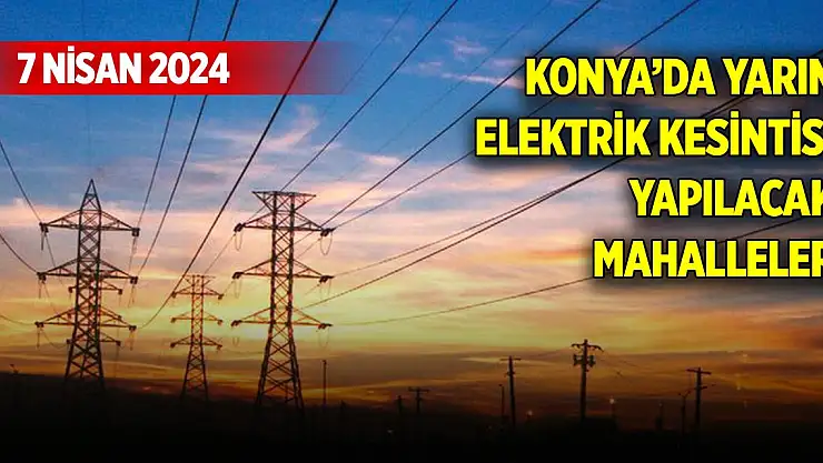 Konya'da yarın elektrik kesintisi yapılacak mahalleler belli oldu (7 Nisan 2024)
