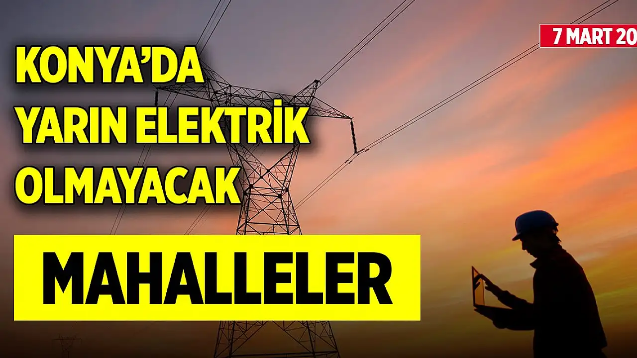 Konya’da 7 Mart (yarın) bakım çalışmaları nedeniyle Karatay ve Selçuklu ilçelerinin belirtilen mahallelerinde elektrik kesintisi yaşanacak. Vatandaşlar mağdur olmamaları adına uyarıldı. İşte elektrik kesintisi yaşanacak mahalleler;