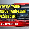 AKOM yarın Konya'da toplu ulaşım kullanacak yolcuları uyardı. Şehir içi otobüs tarifleri yarın farklı olacak.