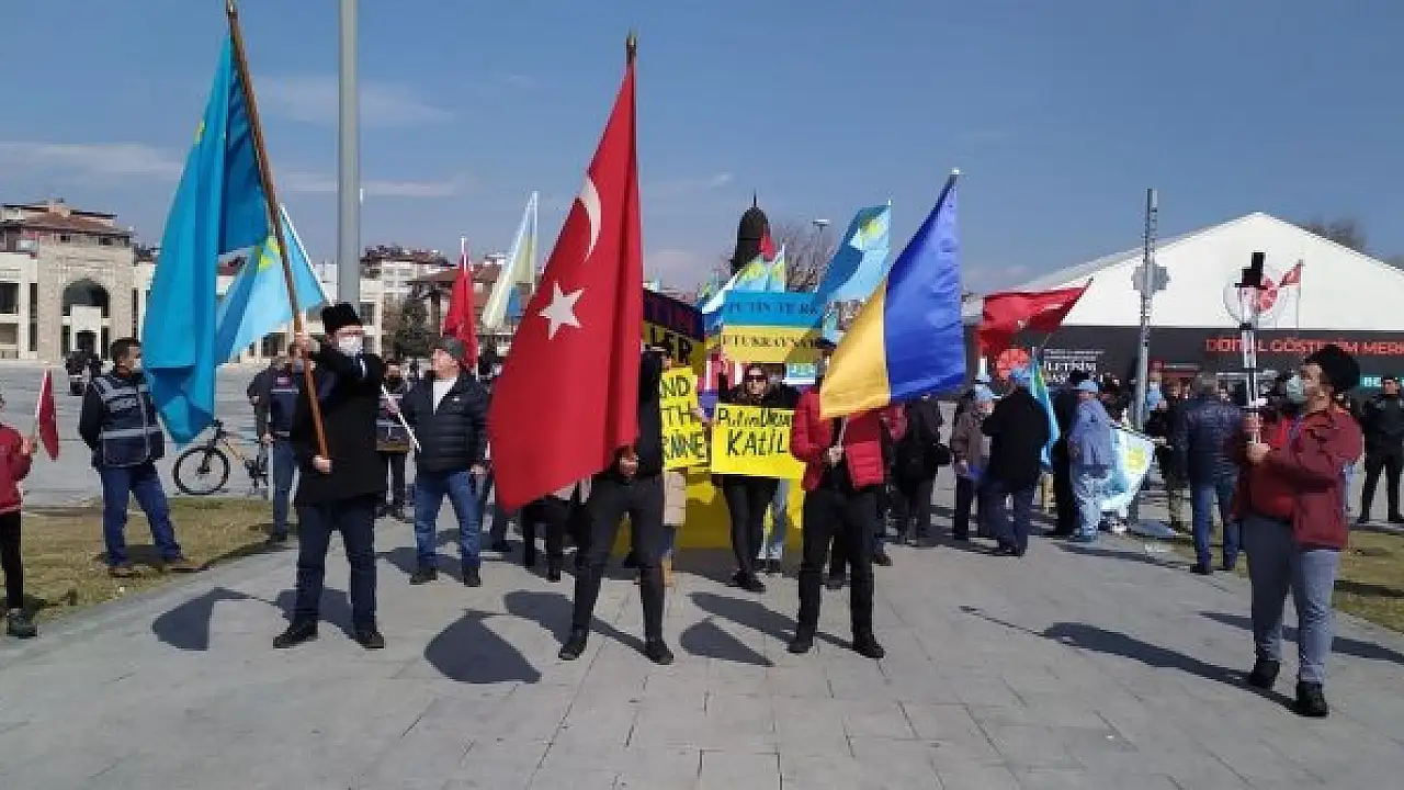 Konya'da yaşayan Kırım Türkleri ve Ukraynalılar, Rusya'nın Ukrayna'da devam eden saldırılarının durması için yürüdü.