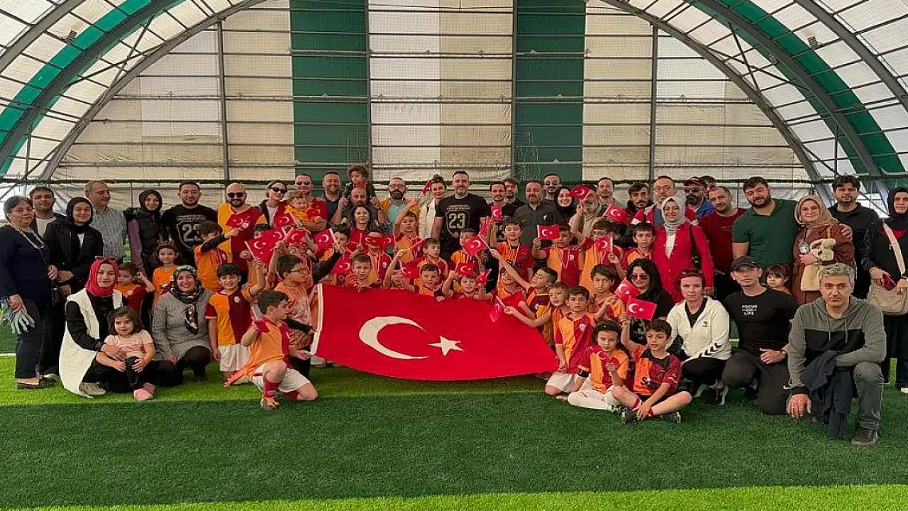 Kutlama programının sonunda dernek yönetimi, GS Spor Okulu öğrencileri ve aileleri ay-yıldızlı bayrağımızı açarak birlikte hatıra fotoğrafı çektirdi.