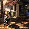 Eski öğretmen lojman binasından geriye kalan malzemelerle soğukta kalan köpeklere yuva yapıldı.