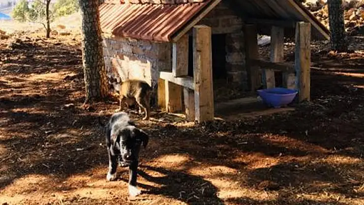 Konya'nın Bozkır ilçesindeki Hamzalar Mahallesi Ortaokulu öğretmen ve öğrencileri, okul bahçesinde yaşayan yavru köpekleri soğuktan korumak için eski öğretmen lojman binasından kalan malzemelerle yuva yaptı.