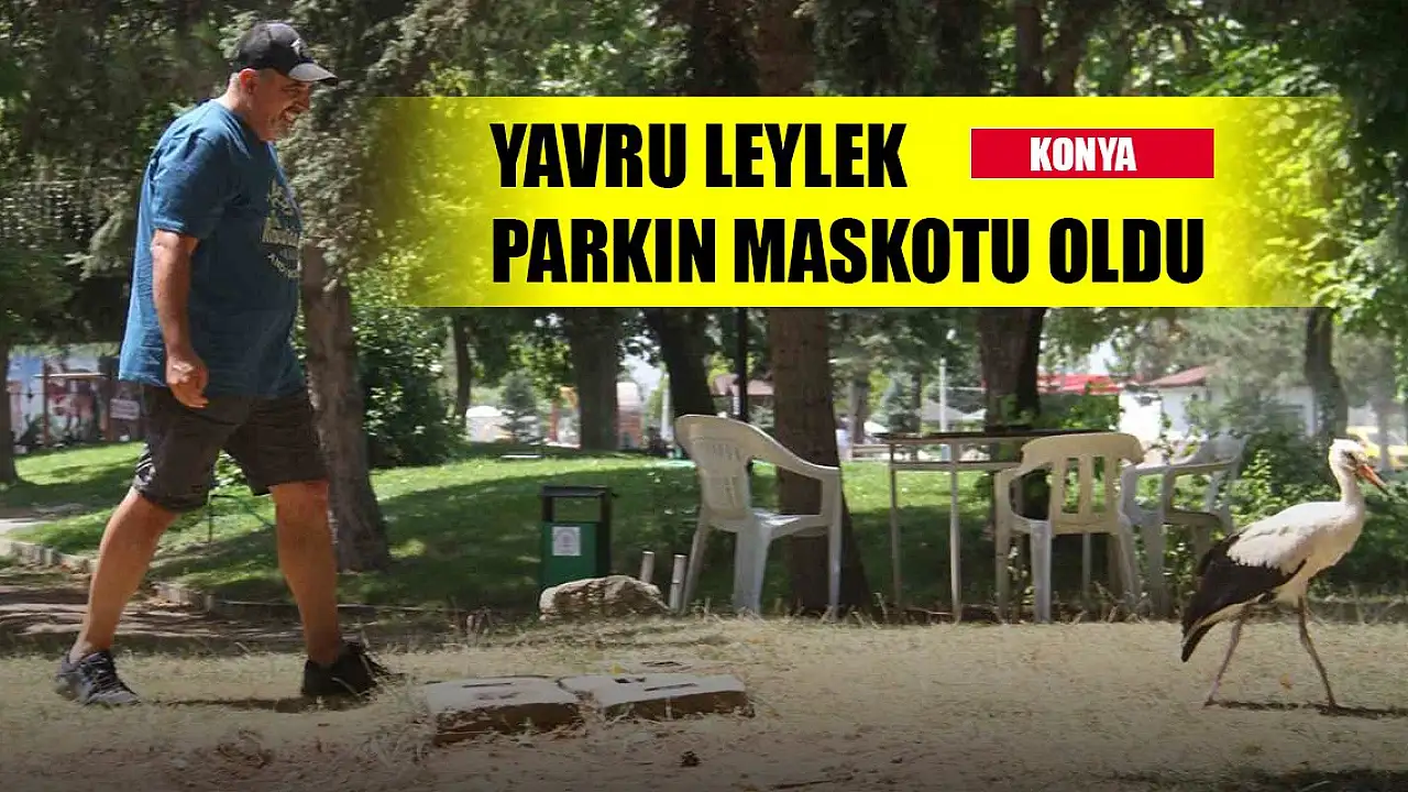 Konya'da yavru leylek parkın maskotu oldu