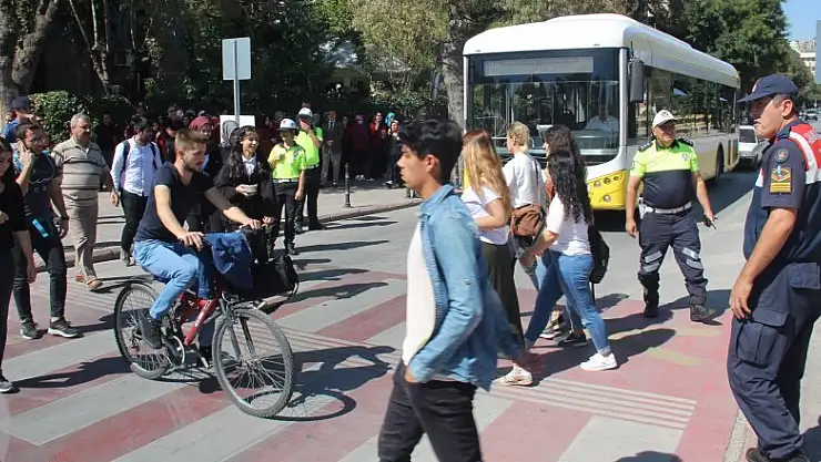 Konya'da trafikte yaya önceliğine dikkat çekmek amacıyla kent merkezindeki yaya geçitlerinde sürücülere yaya geçitlerinde uymaları gereken kurallar anlatıldı.