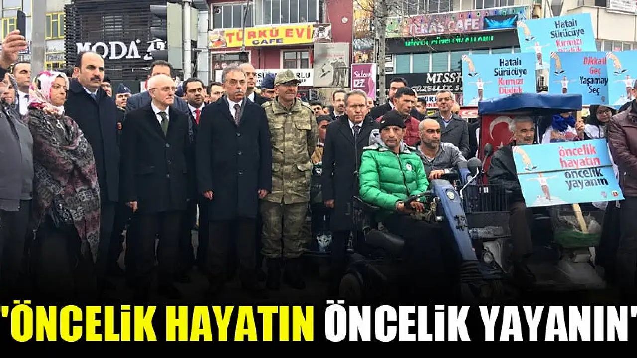 Duyarlılık ve farkındalık oluşturmak için böyle bir eylem gerçekleştirdiklerini dile getiren İçişleri Bakan Yardımcısı Tayyip Sabri Erdil, “İçişleri Bakanımız Sayın Süleyman Soylu, Bakan Yardımcılarımız, Bakanlığımızın Genel Müdürleri, 81 il ve 800’den fazla ilçemizde, valilerimiz, kaymakamlarımızla 6 Şubat gününü toplumsal eylem haline getirmek için sahaya çıktık. Bu eylemin amacı, Türkiye’de terör kadar, yoksulluk kadar önemli olan sorun trafik sorunudur. Çok fazla sayıda hayatını kaybeden vatandaşlarımız, maddi kayıplarımız var. 300 binin üstünde yaralı ve sakat kalan vatandaşlarımız bulunuyor. Bu istikamette bir duyarlılık oluşturmak için “Öncelik hayatın, öncelik yayanın” sloganıyla bir eylem planladık. O çerçevede de sokaktayız. 2019 yılını da yaya öncelikli bir trafik yılı olarak ifade edip bu eylemleri, belirli periyotlarda devam ettireceğiz. Buradaki amacımız bir farkındalık ve algı oluşturmaktır. Trafiğin ülkenin çok önemli bir sorunu olduğunu, trafik kazalarının çok büyük kayıplar oluşturduğunu kamuoyu ile paylaşıyoruz. Rakamını bile ifade etmekten ürktüğümüz çok yüksek bir kaybımız var. 10 bine yakın vatandaşımız bir yılda trafik kazalarında hayatını kaybetti. Bu önemli sorunu hep beraber yüksek bir duyarlılıkla sahiplenmek ve bilinç haline getirip daha dikkatli olmak zorundayız” şeklinde konuştu.