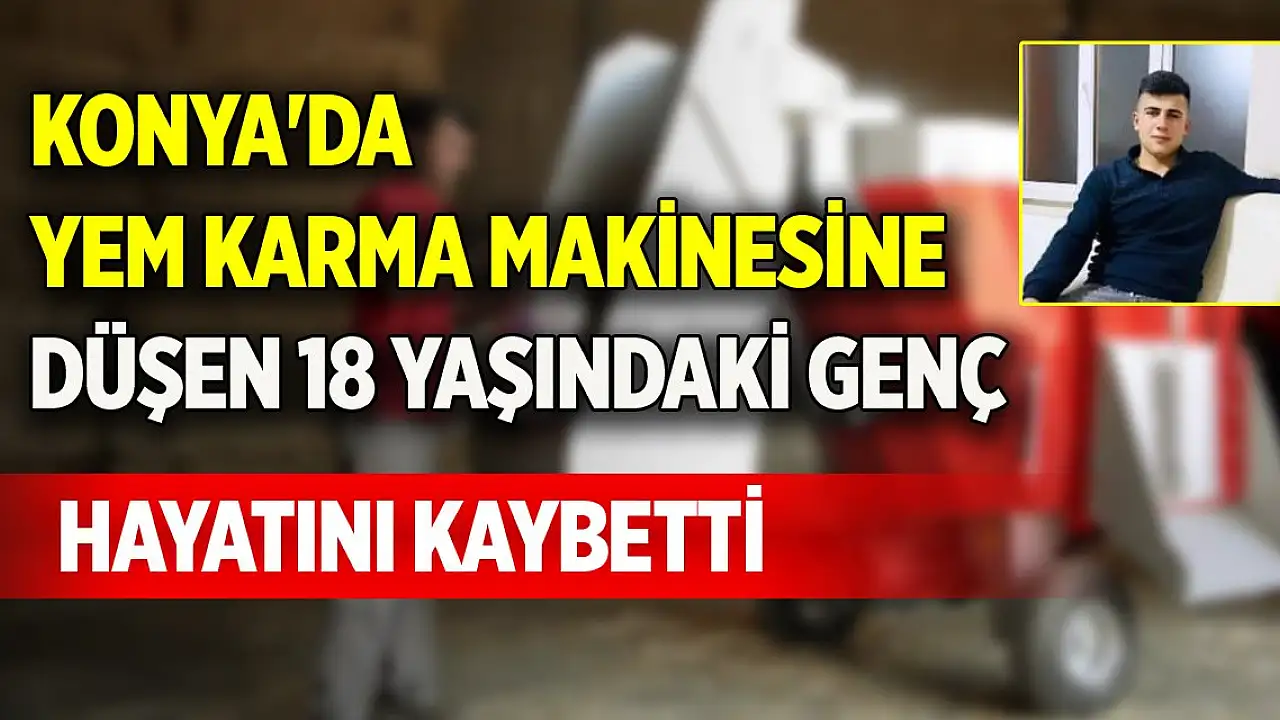 Konya'nın Çumra ilçesinde yem karma makinesine düşen kişi hayatını kaybetti. İlçeye bağlı Yenisu Mahallesi'nde hayvancılıkla uğraşan Rıza Dalbudak (18), yem balyası attığı sırada yem karma makinesine düştü.