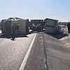 Konya'da yem yüklü tırın devrilmesi sonucu meydana gelen trafik kazasında 2 kişi yaralandı.