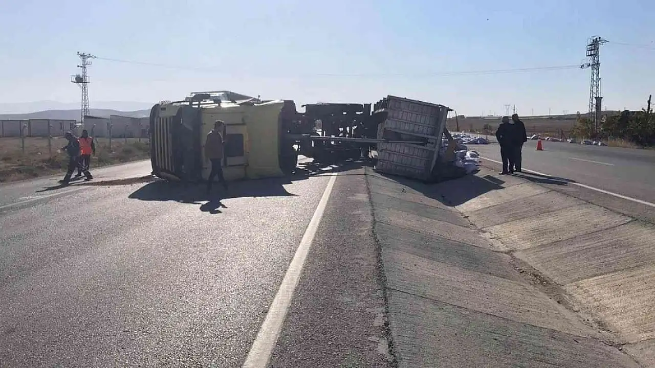 Kaza, saat 14.00 sıralarında Ereğli ilçesi Acıpınar Mahallesi mevkiinde meydana geldi. Edinilen bilgiye göre, Ahmet B. idaresindeki 38 AEJ 779 plakalı hayvan yemi yüklü tır kontrolden çıkarak refüje devrildi.