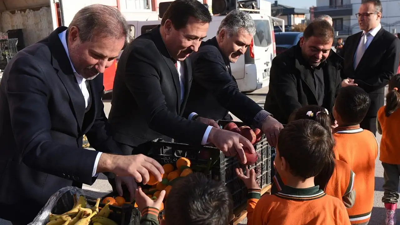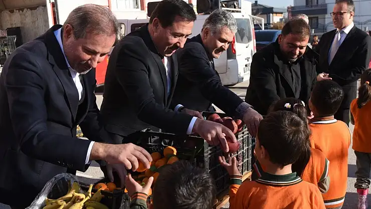 Konya'da Yerli Malı Haftası'nda öğrencilere meyve ikramı