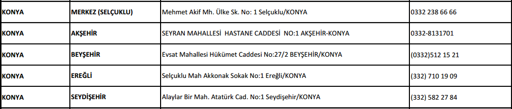 Konya'da açık olacak nüfus müdürlükleri