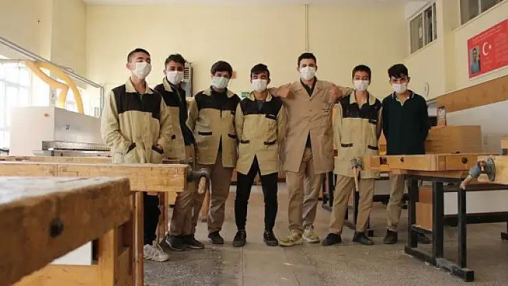 11. sınıf öğrencisi Muammer Enes Özbahar, "Küçükken eniştemin mobilyacı dükkanına giderdim. Bu mesleğe heveslendim. Mezun olunca kendi iş yerimi açmak istiyorum. Ben ağaca dokunmayı, şekil vermeyi çok seviyorum. Döner sermayede de çalışıyorum. Ne kadar üretim yaparsak o kadar para kazanıyoruz. Geçen ay 46 saat çalıştım ve 300 lira aldım." ifadelerini kullandı.