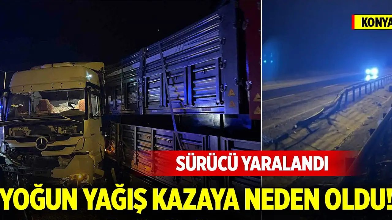 Konya'da yoğun yağış kazaya neden oldu. Tırın bariyerlere çapması sonucu meydana gelen kazada sürücü yaralandı.