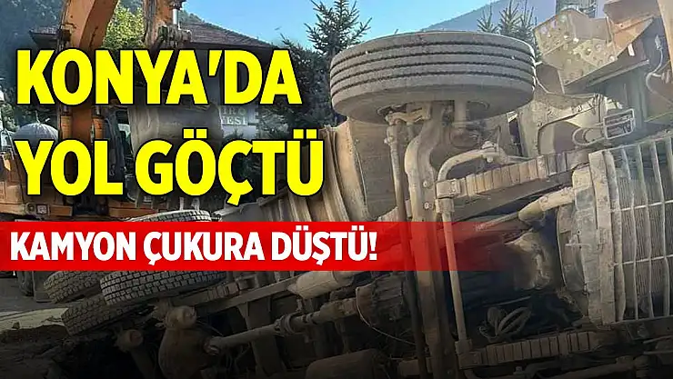 Konya'da yol göçtü, kamyon çukura düştü!