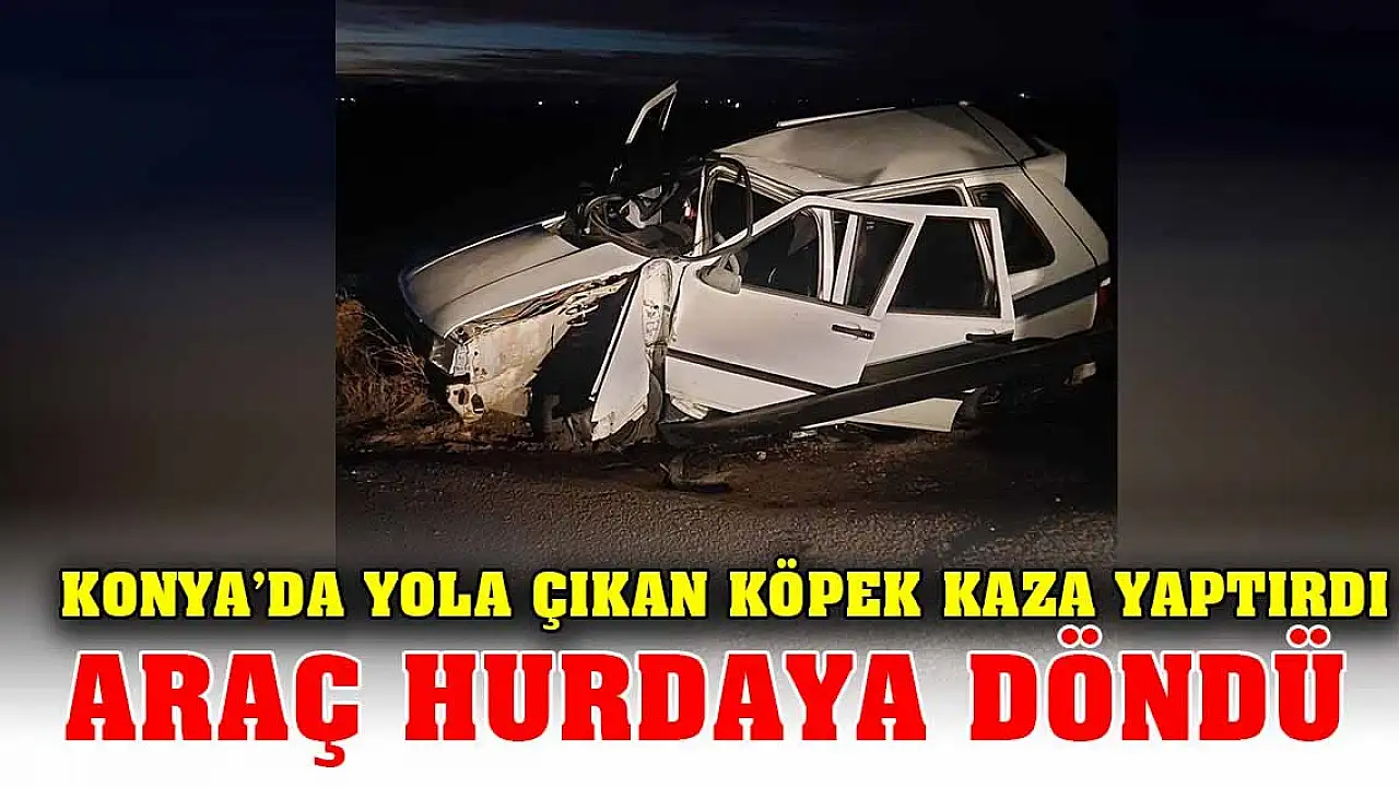 Konya'da yola çıkan köpek kaza yaptırdı Araç hurdaya döndü