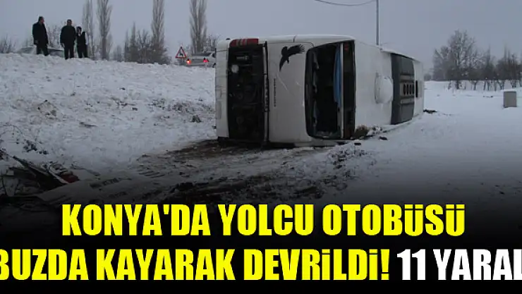 Konya'da yolcu otobüsü buzda kayarak devrildi! 11 yaralı