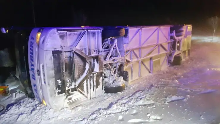 Bayburt'a giden Hulisi Saka yönetimindeki 69 AS 533 plakalı yolcu otobüsü, sürücüsünün direksiyon hakimiyetini kaybetmesi sonucu Konya-Aksaray karayolunun 20. kilometresinde devrildi.