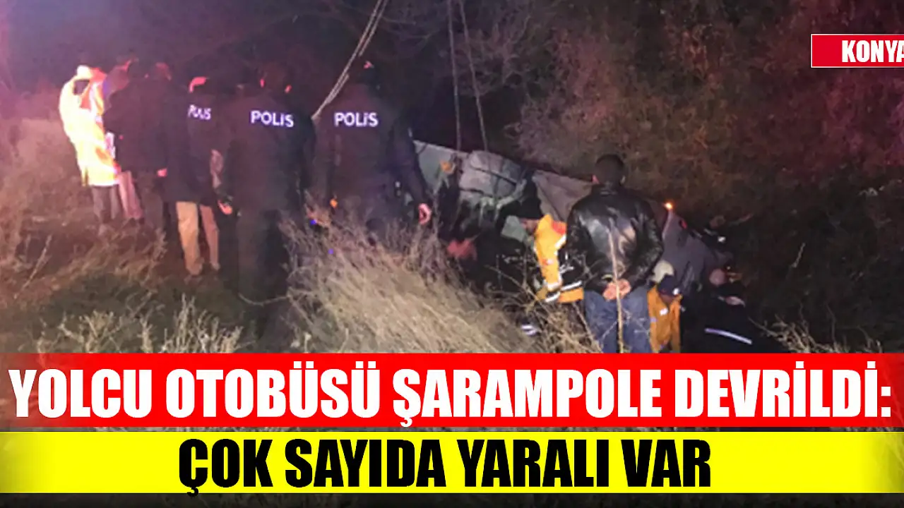 Konya'da yolcu otobüsü şarampole devrildi: Çok sayıda yaralı var