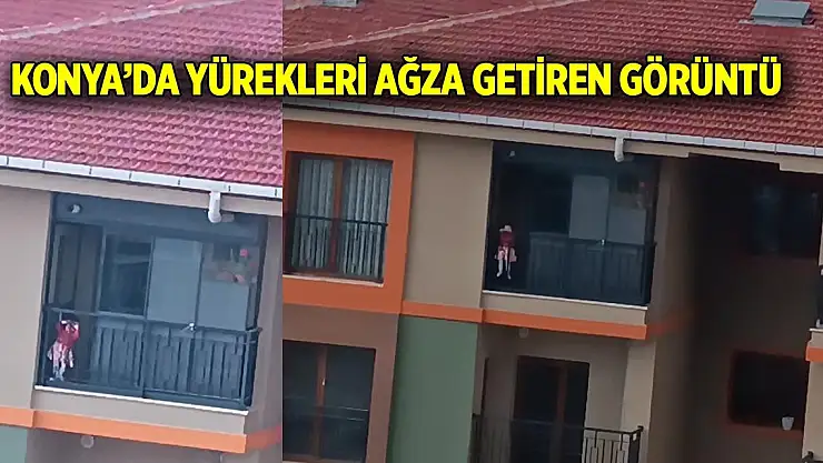 Konya'nın Selçuklu ilçesi Ardıçlı TOKİ konutlarında bir çocuğun balkon korkularına tırmanmaya çalışması görenlerin yüreklerini ağza getirdi.