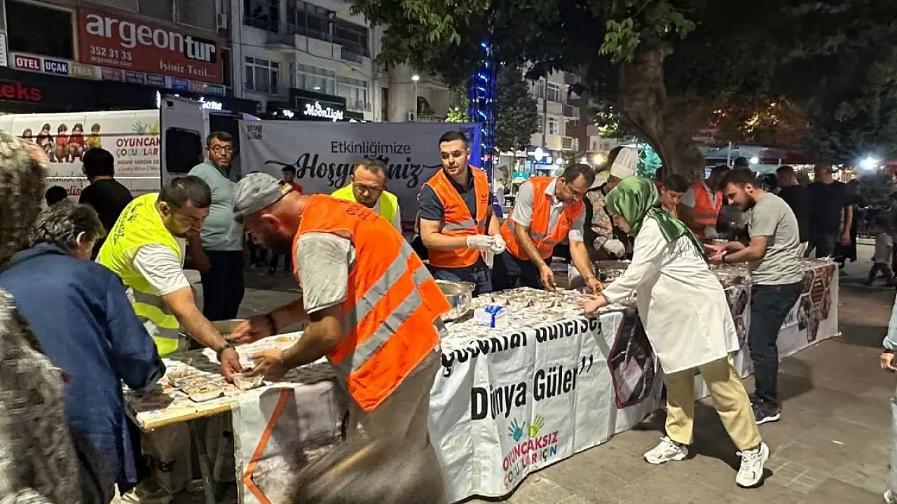 İnsani Yardım faaliyetleri dışında sosyal sorumluluk projelerine de imza atan Oyuncaksız Çocuklar İçin Derneği bu kez Zafer Meydanı'nda aşure dağıtımı yaptı.