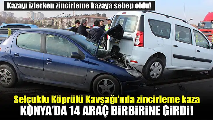 1'inci Organize Selçuklu köprülü kavşağında meydana gelen zincirleme kazada 14 araç birbirine girdi.