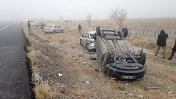Konya-Aksaray karayolunun 40. kilometresinde, yoğun sis ve buzlanma nedeniyle jandarma aracı bir otomobille çarpıştı.