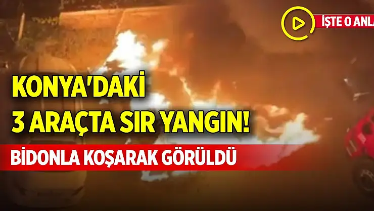 Konya'daki 3 araçta sır yangın! Bidonla koşarak görüldü