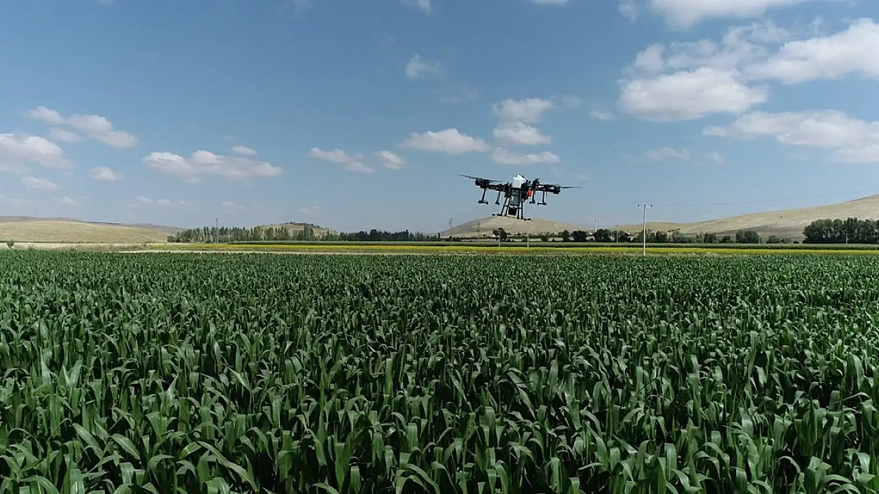 Konya'daki belediye, çiftçilere destek vermek amacıyla başlatmış olduğu 'Üretmek Sizden Destek Bizden' sloganı ile mısır tarlalarında görülen sineklere karşı drone ile ilaçlama yapmaya başladı.