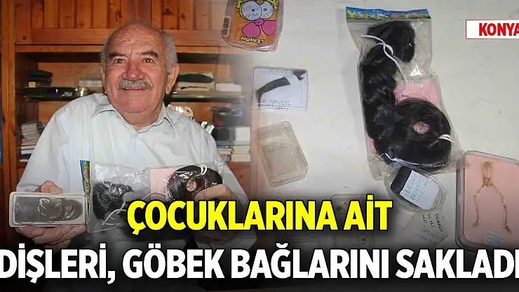 Konya'da yaşayan Sabit Kasapoğlu çocuklarına ait dişleri, göbek bağlarını ve birçok eşyayı saklıyor.