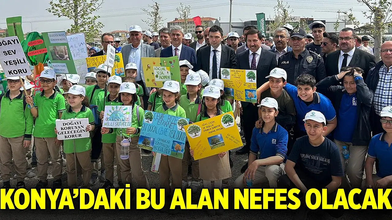 Konya'da Çatalhöyük Mahallesi'nde ağaçlandırma sahasında fidan dikim programı gerçekleştirildi.
