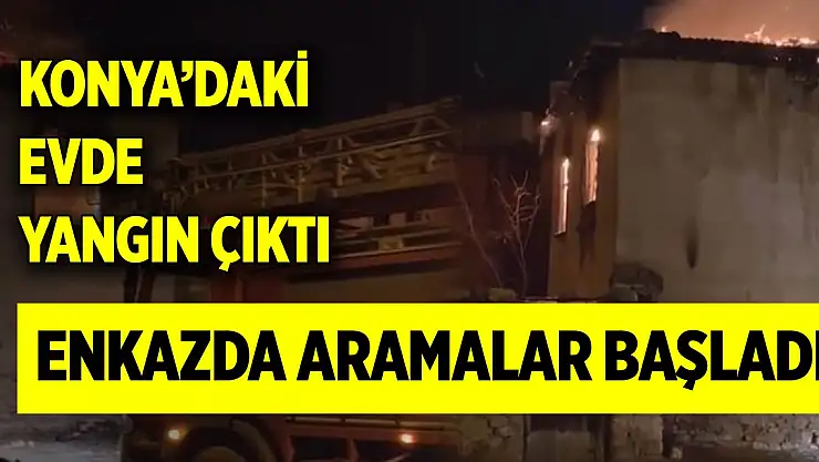 Konya'daki evde yangın çıktı, enkazda aramalar başladı