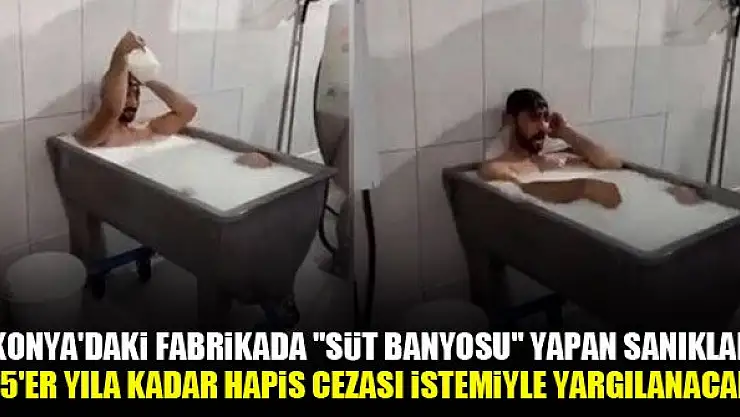 Konya'da çalıştıkları süt toplama merkezinde kazanda sütle banyo yapan ve bu anları görüntüleyerek sosyal medyada paylaşan tutuksuz 2 sanık hakkında hazırlanan iddianamede 'zehirli madde katma' suçundan 2'şer yıldan 15'er yıla kadar hapis cezası talep edildi.