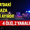 Konya'nın Derbent ilçesinde iki aracın çarpışması sonucu meydana gelen trafik kazasında 4 kişi hayatını kaybetti, 2 kişi yaralandı.