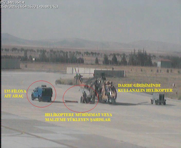 Konya 3. Ana Jet Üs ve Garnizon Komutanlığından 15 Temmuz darbe girişimine katılan, aralarında MAK (Muharebe Arama Kurtarma) Tim Komutanı Başçavuş Yılmaz Bahar'ın da olduğu 3 tim ile 2 helikopterin üsten ayrılışı ve yapılan hazırlıkların güvenlik kamerası kayıtlarından elde edilen fotoğrafları, soruşturma dosyasında yer aldı.