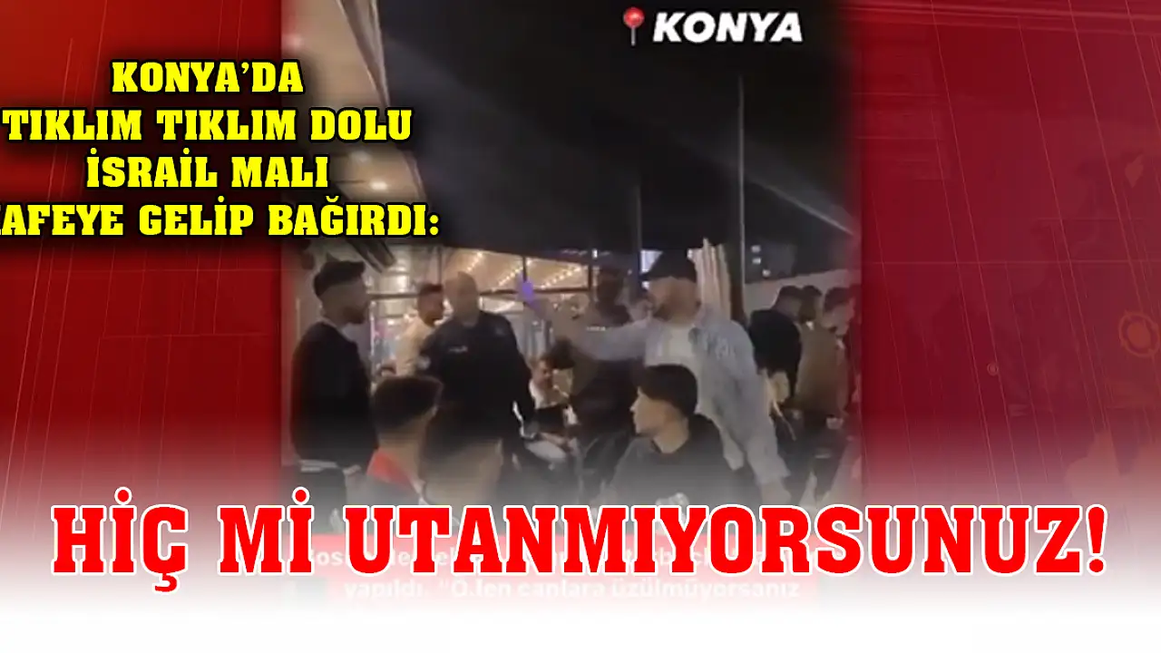 Konya'nın Bosna Hersek Mahallesinde faaliyet gösteren İsrail destekli bir kafeye gelen şahıs, kafeyi tıklım tıklım dolduranlara tepki göstererek, 'Hiç mi utanmıyorsunuz' diye bağırdı.