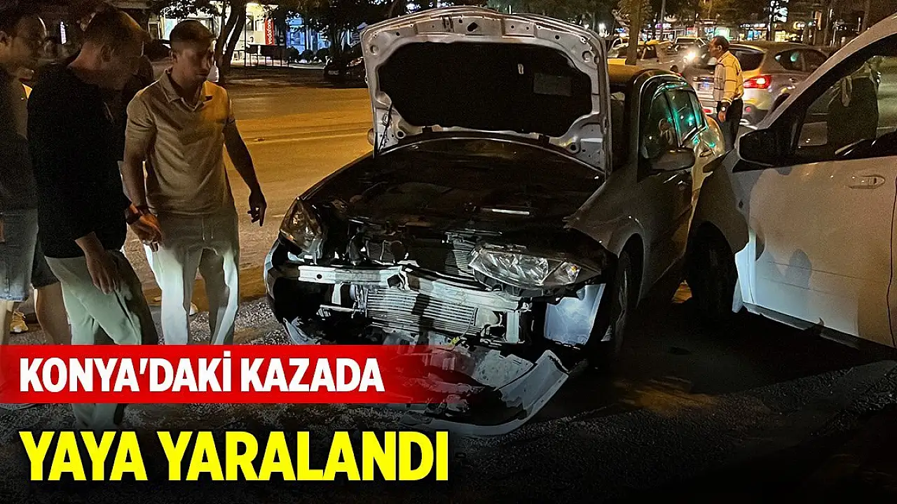 Konya'da çarpışan otomobillerin park halindeki aracı savurması sonucu kaldırımda yürüyen yaya yaralandı.