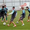 İki grup halinde dar alanda pas çalışmasıyla devam eden antrenman, taktik çalışmayla sona erdi.