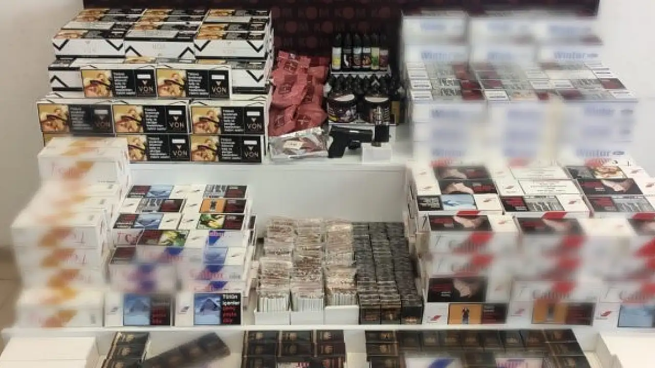 Yapılan operasyonda 1 adet 9 mm çapında ruhsatsız tabanca, 1 adet elektronik sigara cihazı, 59 adet elektronik sigara likiti, 90.600 adet makaron, 1.690 paket kaçak sigara, 6.000 gr. kaçak nargile tütünü, 5.000 gr. kıyılmış tütün ele geçirildi.