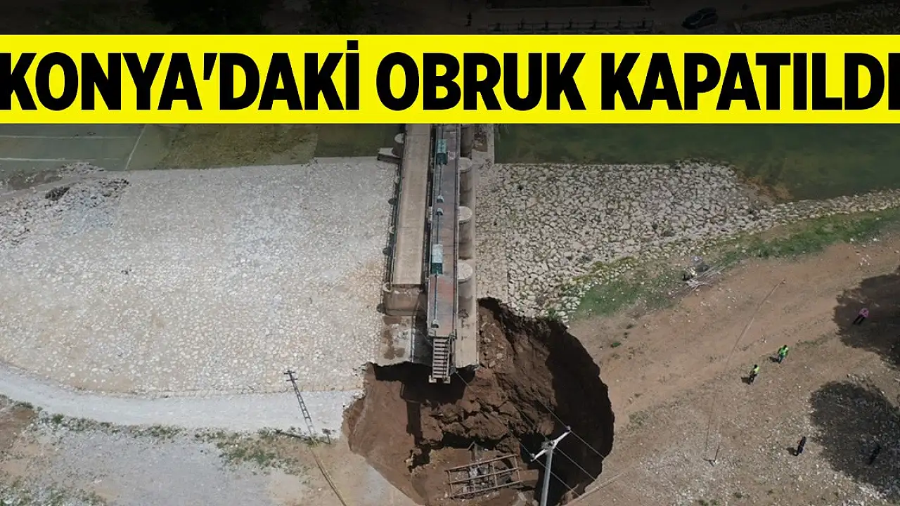 Konya'nın Çumra ilçesinde sulama işletim kanalı olarak kullanılan dere yatağında oluşan obruk, DSİ'nin mühendislik çalışmalarıyla kapatıldı.
