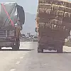 Alabileceğinden çok fazla yük alan kamyon, sağ tarafına eğik bir şekilde trafikte seyretti. O anlar ise başka bir sürücünün cep telefonu kamerasına yansıdı. Kamyon bir süre sonra gözden kayboldu.