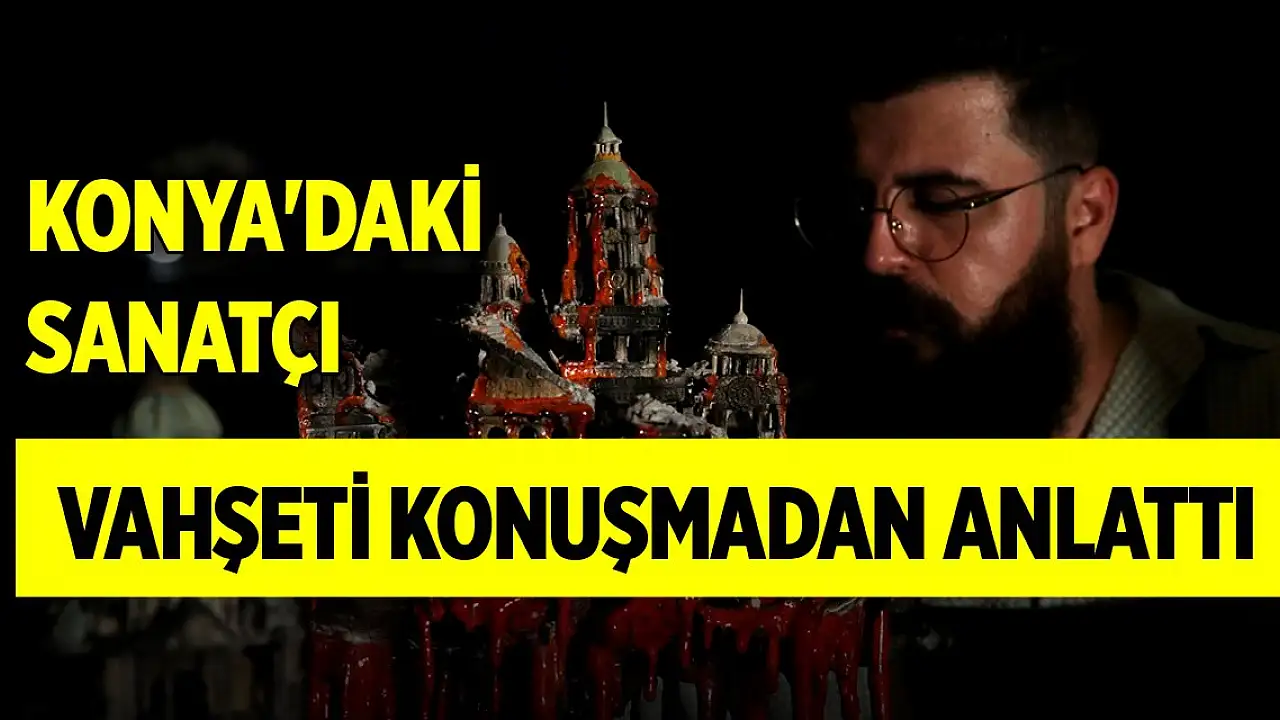 Konya'daki sanatçı, vahşeti konuşmadan anlattı