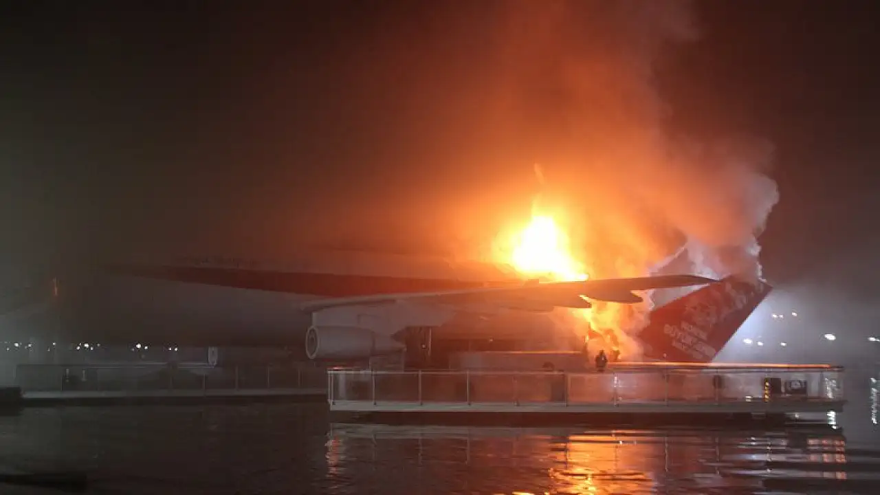 İhbar üzerine çok sayıda itfaiye ekibi yangın mahalline yönlendirildi. Polis ekipleri çevrede güvenlik tedbiri alırken, elektrik ve doğalgaz dağıtım şirketlerinin ekipleri de elektrik ve doğalgaz akışını kesti. İtfaiye ekipleri söndürme çalışmalarına başlarken, yangın uçağın burun kısmına doğru ilerledi.