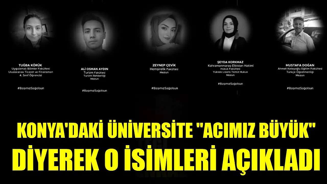 Konya'daki üniversite 'Acımız büyük' diyerek o isimleri açıkladı