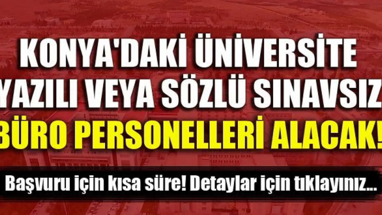 - Konya'daki üniversite, yazılı veya sözlü sınavsız büro personelleri alacak! Detaylar için tıklayınız
