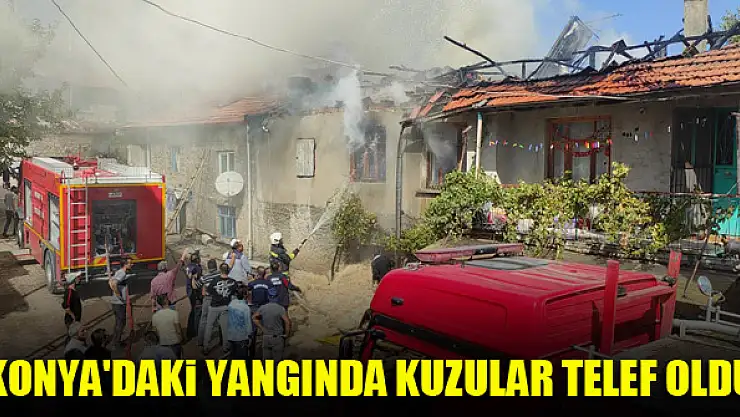 Seydişehir'de evin çatısında yapılan tadilat sırasında çıkan yangında 3 kuzu telef oldu, 20 ton saman yandı.