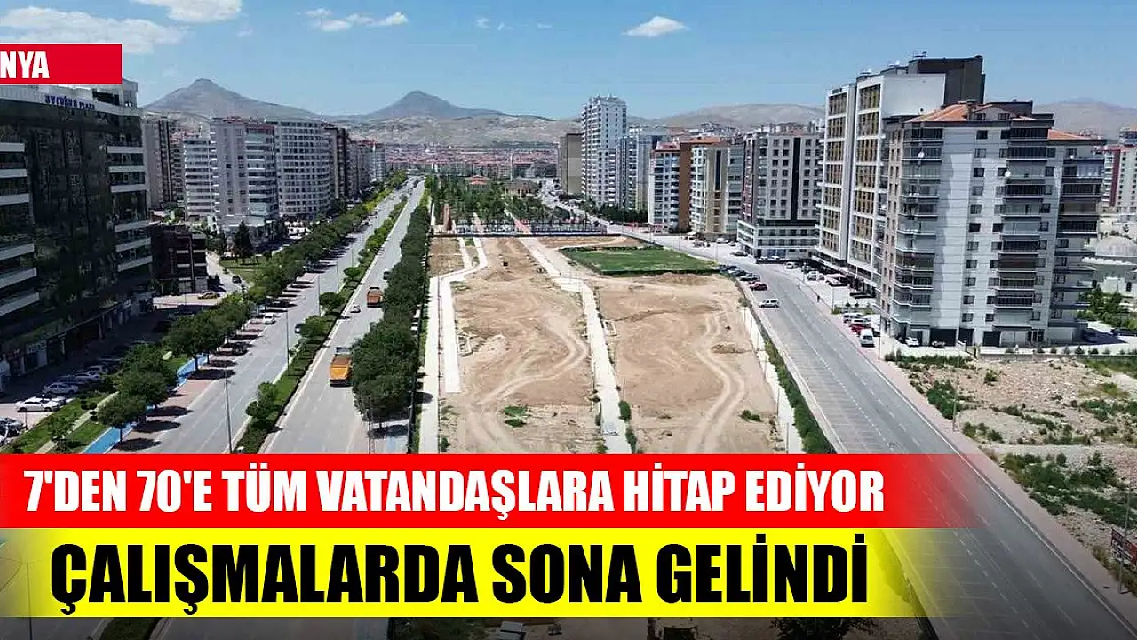 Konya'da ailelerin hoşça vakit geçirebilecekleri yeni bir alan daha hizmete sunuluyor. Şehrin merkezinde önemli bir yeşil doku oluşturan parkın son etabı yıl bitmeden tamamlanacak.