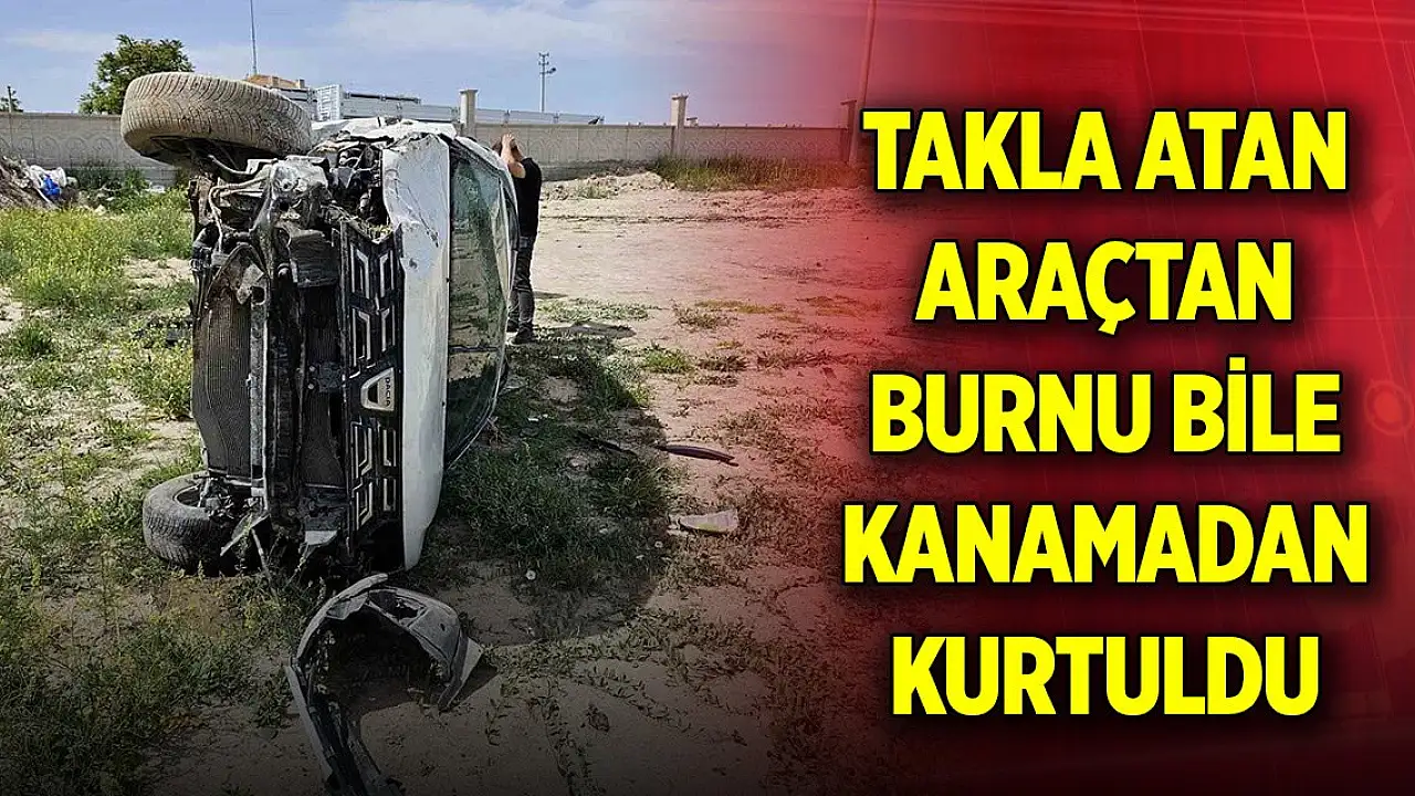 Konya'dan Aksaray istikametine seyreden araç sürücüsünün direksiyon hakimiyetini kaybetmesiyle şarampole düşerek takla atarken, sürücü hurdaya dönen araçtan burnu bile kanamadan kurtuldu.