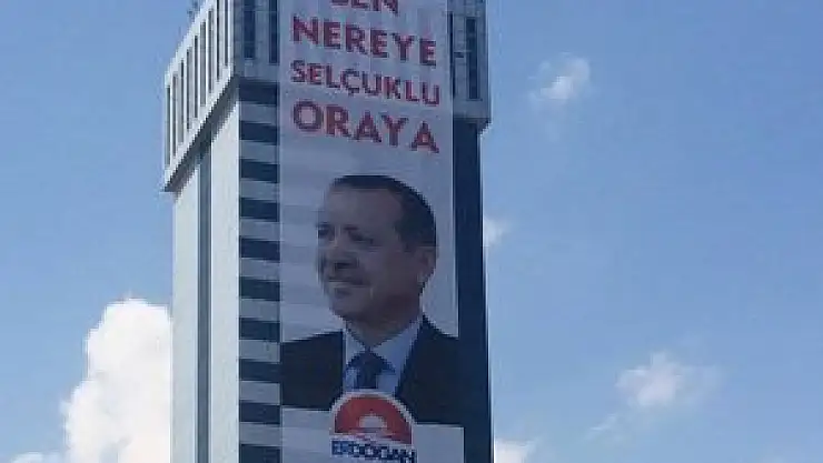 Selçuklu, Meram ve Karatay ilçe teşkilatları tarafından şehrin çeşitli noktalarındaki yüksek binalara asılan büyük pankartlarda Cumhurbaşkanı Adayı Recep Tayyip Erdoğan’a destek verilirken, vatandaşlar 9 Ağustos Cumartesi günü yapılacak mitinge davet edildi.