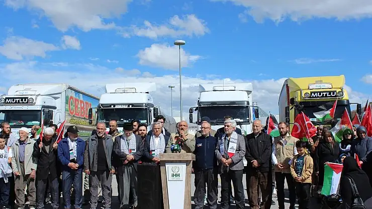 Konuşmanın ardından tırlar, dualarla Gazze'ye uğurlandı.